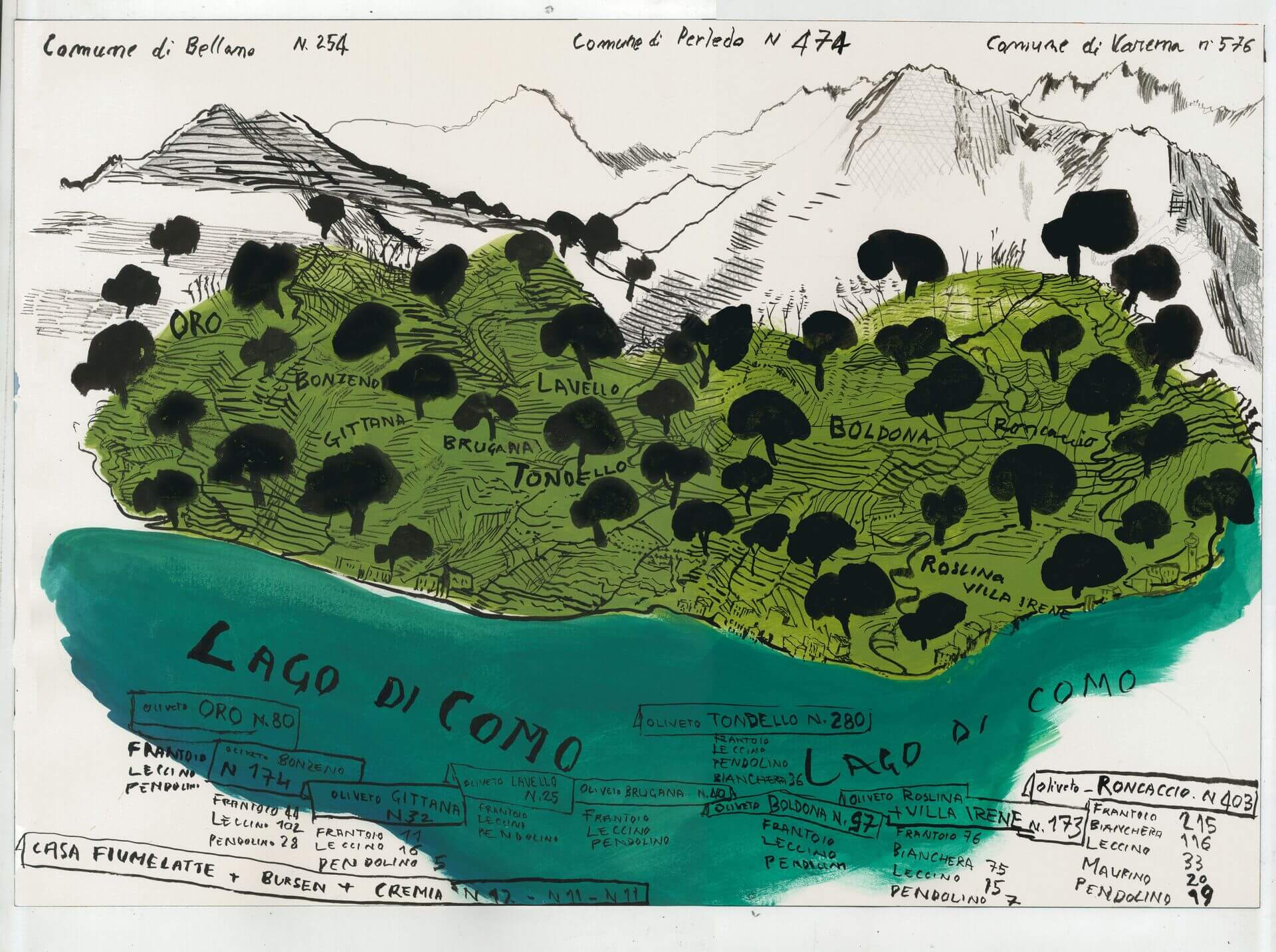A partire dai primi anni 2000 la famiglia Gaiatto acquisisce e recupera oliveti abbandonati fra Varenna e Perledo, in provincia di Lecco, per un totale di circa 8 ettari.